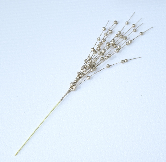 Gałązka dekoracyjna KULKI (średnica 1 cm) 43 cm SREBRNY BROKAT