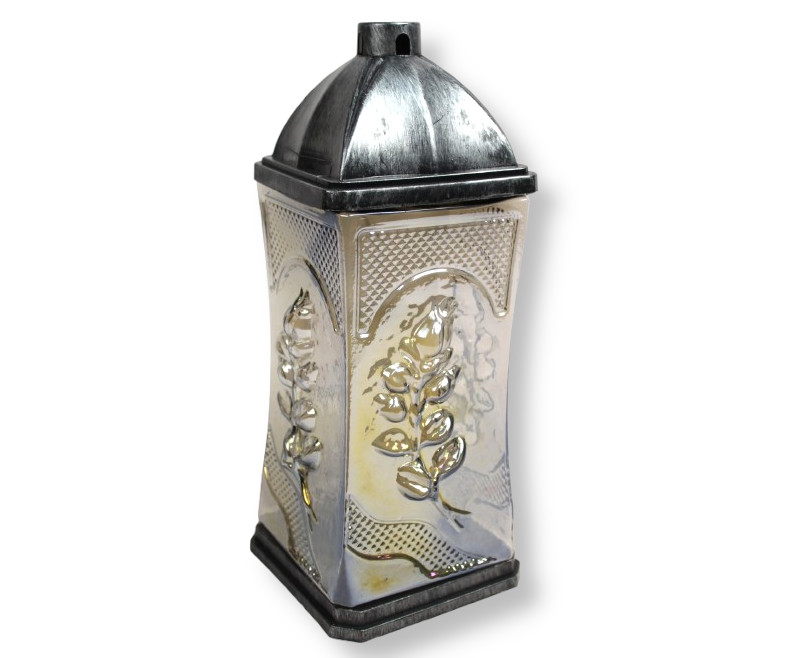 Znicz szklany kapliczka TRAPEZ 3 szyba mini RÓŻA SREBRNA 25 cm - 1 szt