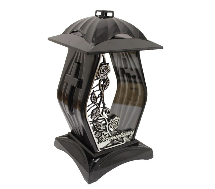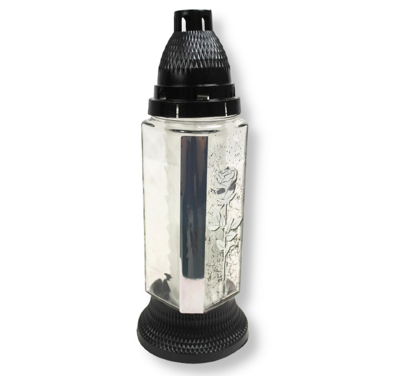 Znicz szklany ZPG DIAMENT zabudowa CZARNY srebrna aplikacja Pamiętamy, róże 30 cm - 1 szt