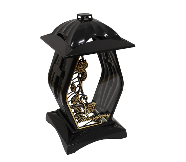 Znicz szklany ZPG DIAMENT zabudowa CZARNY złota aplikacja Pamiętamy, róże 30 cm - 1 szt