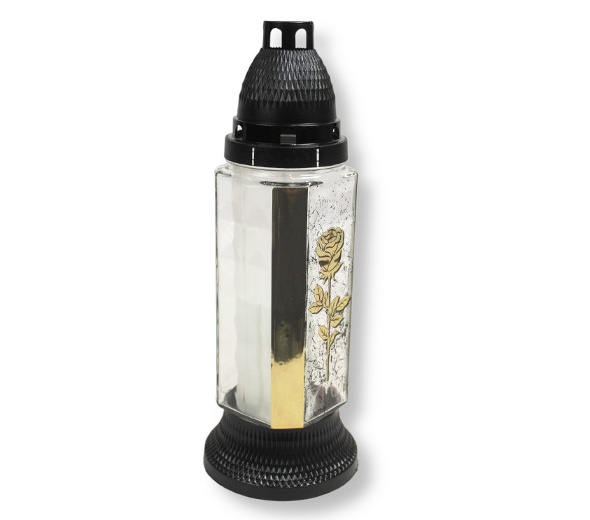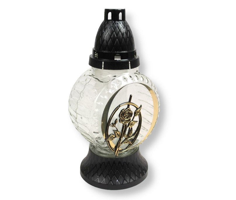Znicz szklany ZW 292 RÓŻA 27 cm czarno-złoty  - 1 szt