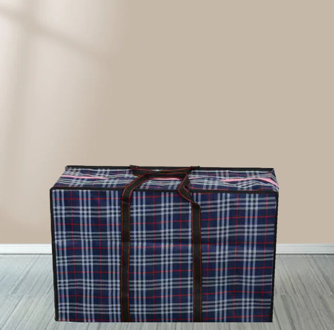 Torba gospodarcza, zakupowa tkanina wzór KRATA 74x36x20 cm GRANATOWA