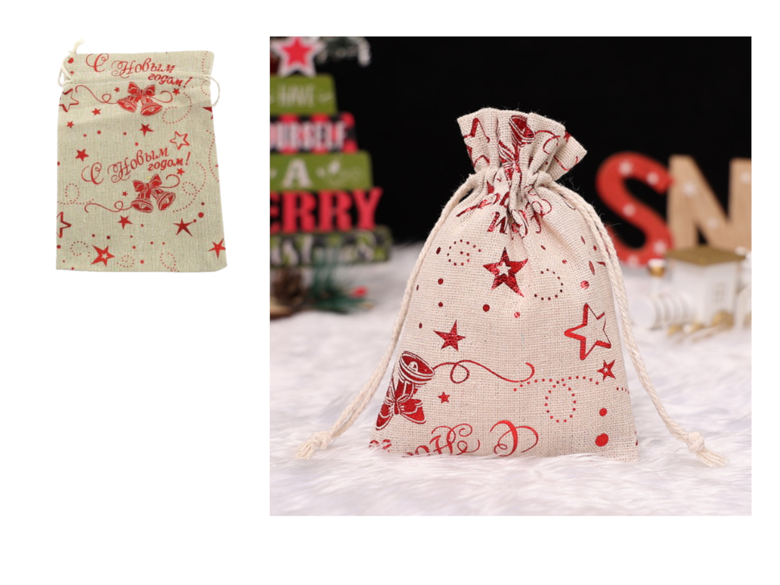 Worek na prezenty, upominki JUTOWY 18x13 cm GWIAZDKI