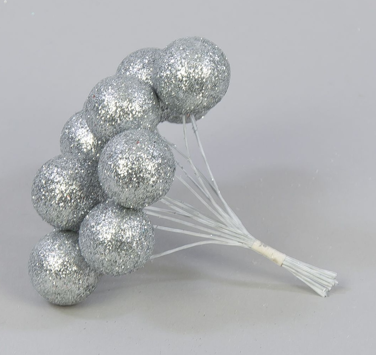 Bombka styropianowa na drucie brokat - 1 szt = wiązka 12 szt - SREBRNA