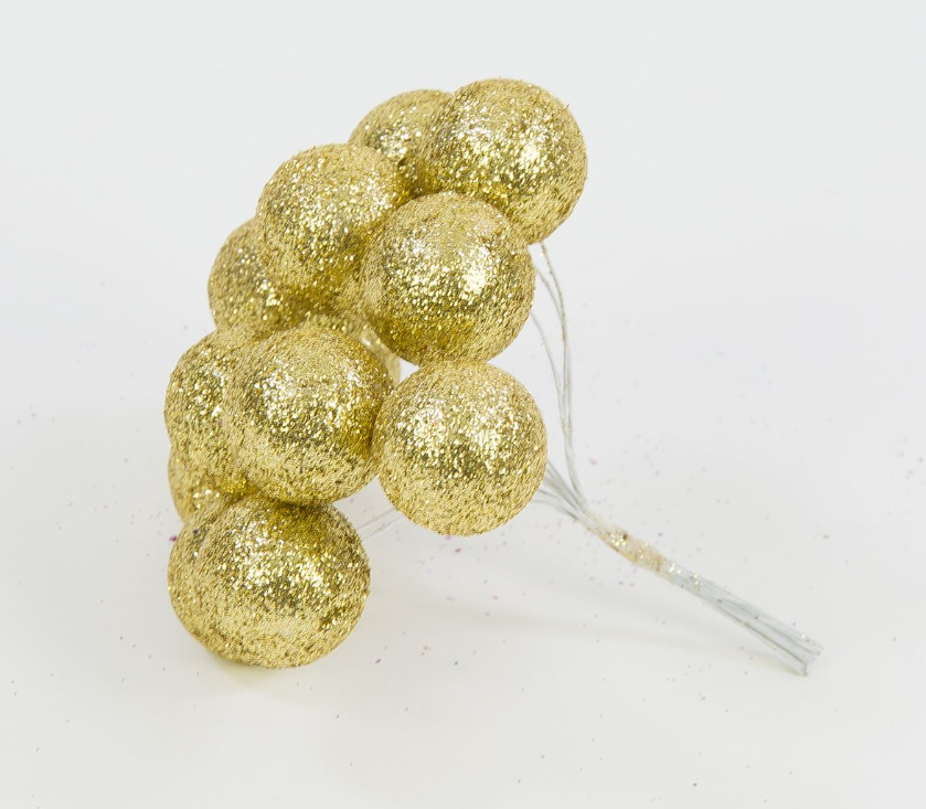 Bombka styropianowa na drucie brokat - 1 szt = wiązka 12 szt - ZŁOTA