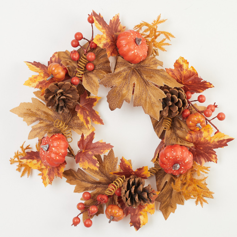 Dekoracja jesienna Wieniec styropianowe dynie z szyszkami 36 cm