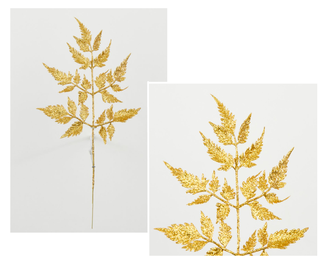 Gałązka liści 30 cm ZŁOTY BROKAT - 1 szt