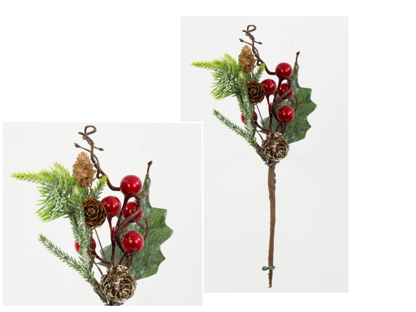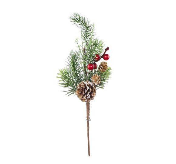 Gałązka pik z szyszkami i czerwonymi kulkami1 30 cm #01 - 1 szt