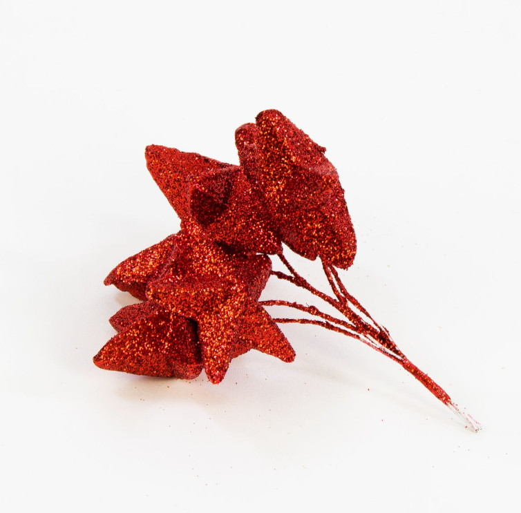 Gwiazda styropianowa na drucie brokat - 1 szt = wiązka 6 szt - CZERWONA