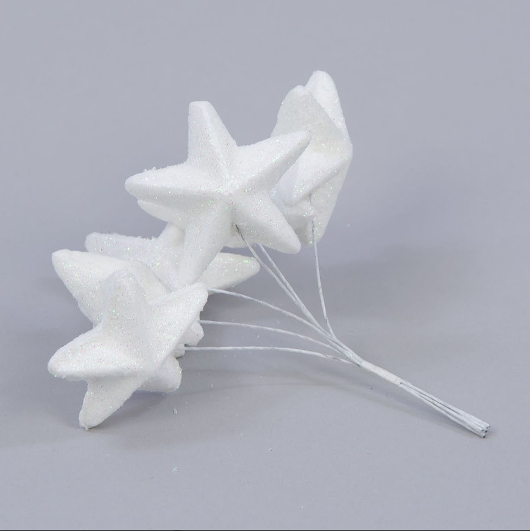 Gwiazda styropianowa na drucie brokat - 1 szt = wiązka 6 szt - BIAŁA