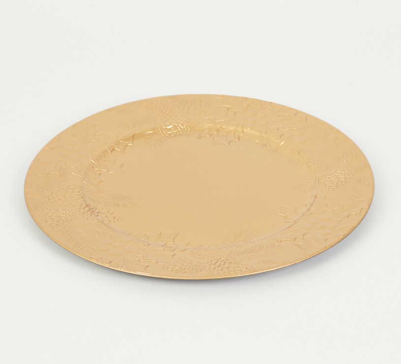 Talerz, podtalerz patera dekoracyjna plastikowa połysk WYTŁACZANE GAŁĄZKI ŚWIĄT. złoty 33 cm