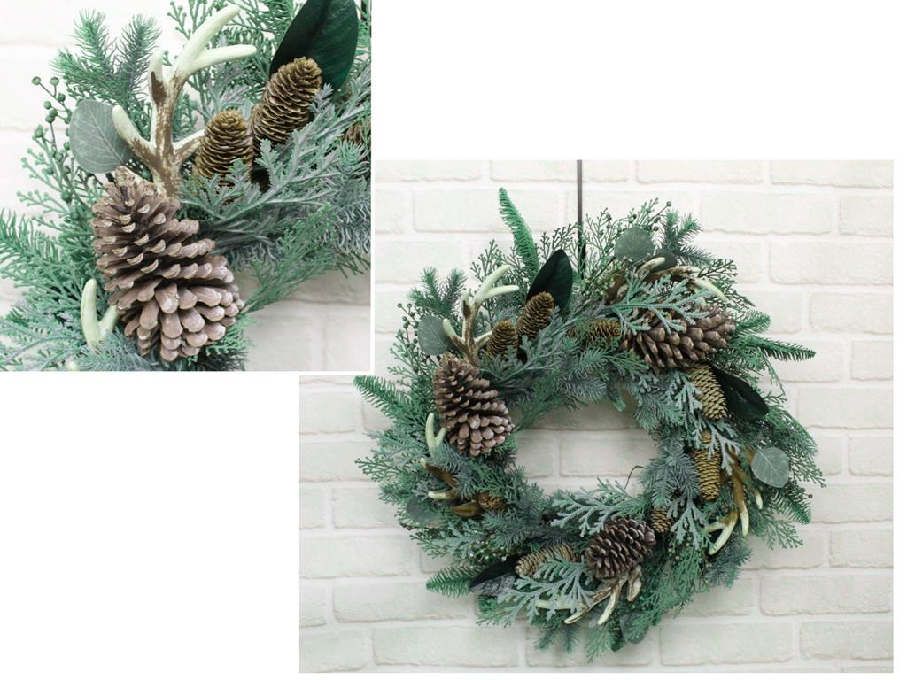 Wieniec z dużą szyszką i rogami renifera 60 cm