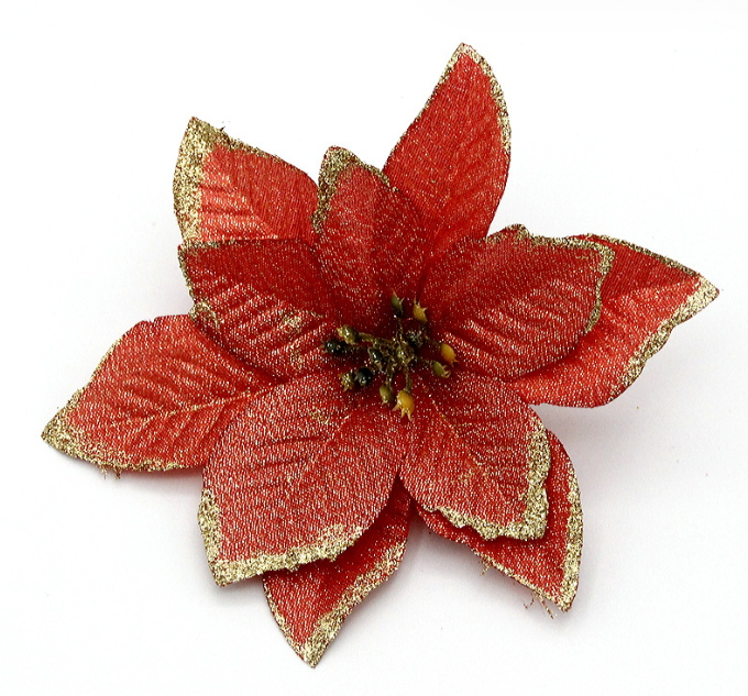 Kwiat sztuczny GWIAZDA BETLEJEMSKA - POINSECJA 14 cm CZERWONA Z ZŁOTYM BRZEGIEM