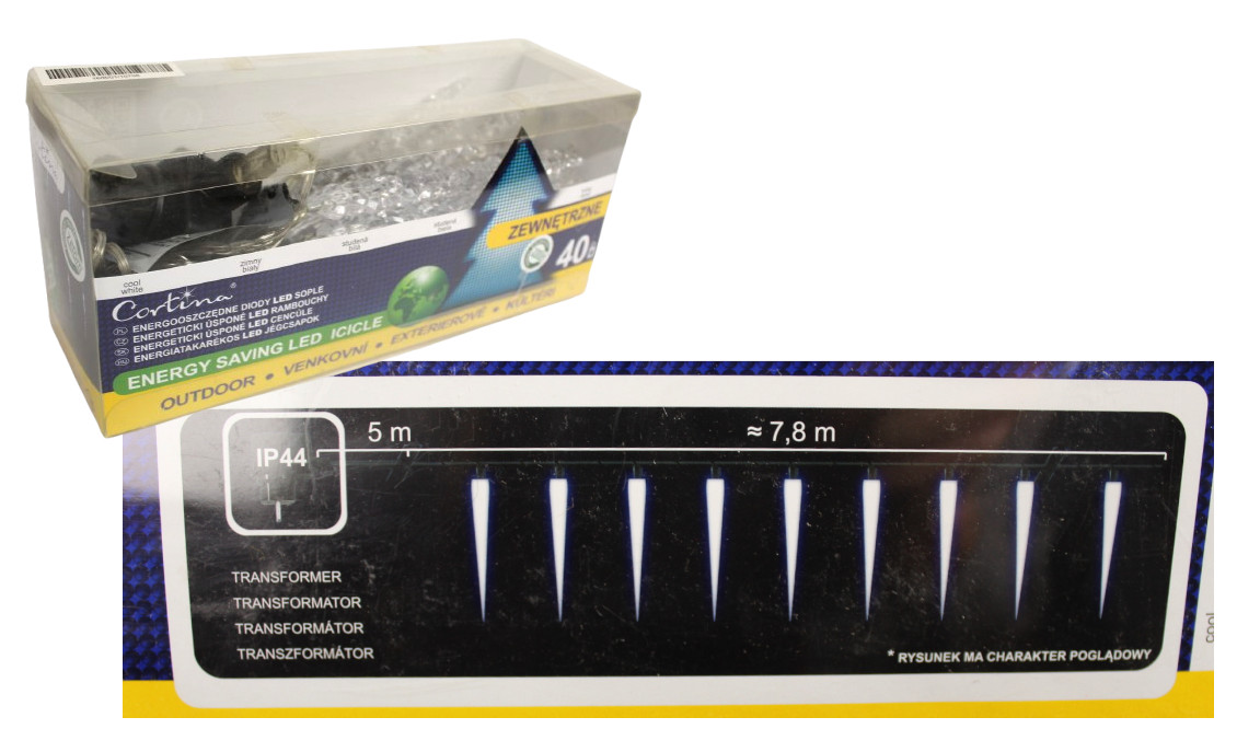 Lampki LED 40L AKRYLOWE SOPELKI transparentne zewnętrzne 7,8 m - ZIMNY BIAŁY