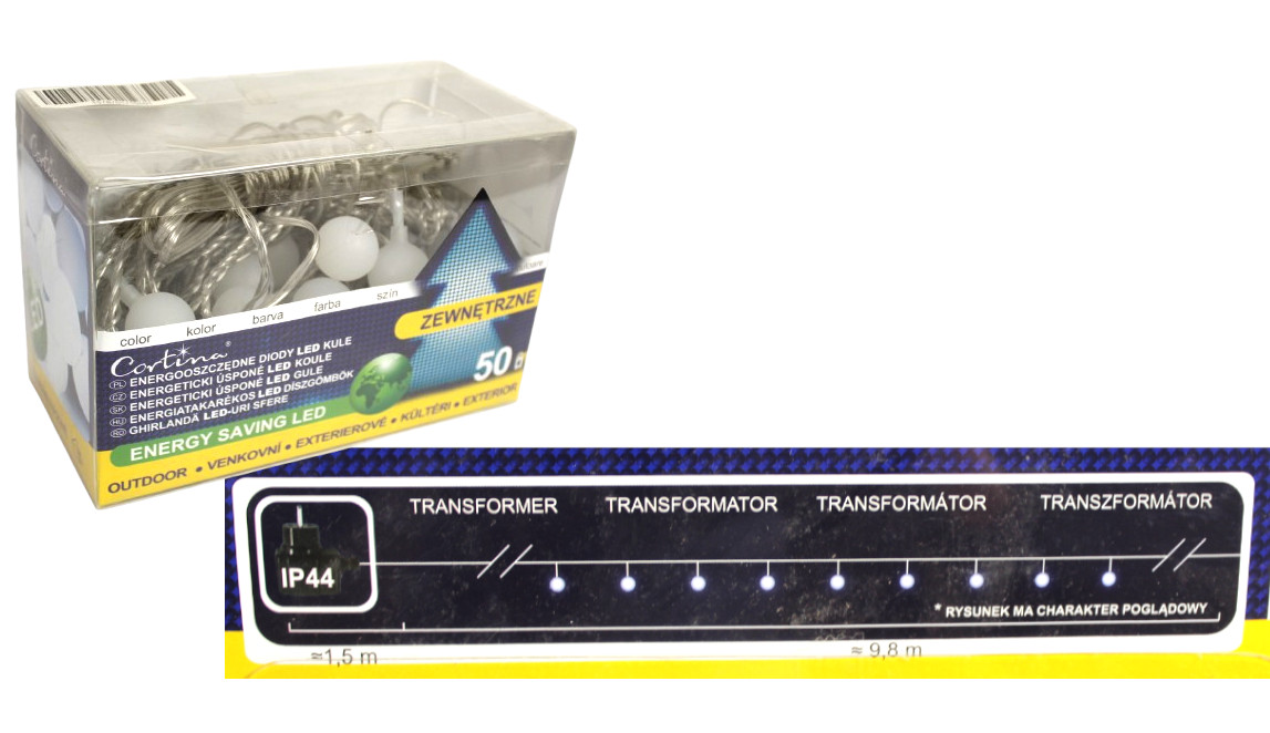 Lampki LED 50L KULE zewnętrzne transformator IP44 11,3m - ZIMNY BIAŁY