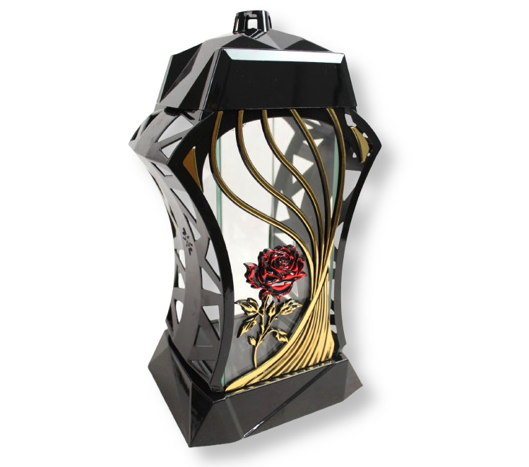 Znicz szklany Lampion IX AŻUR BIS 37 cm róża czerwona ze złotym - 1 szt