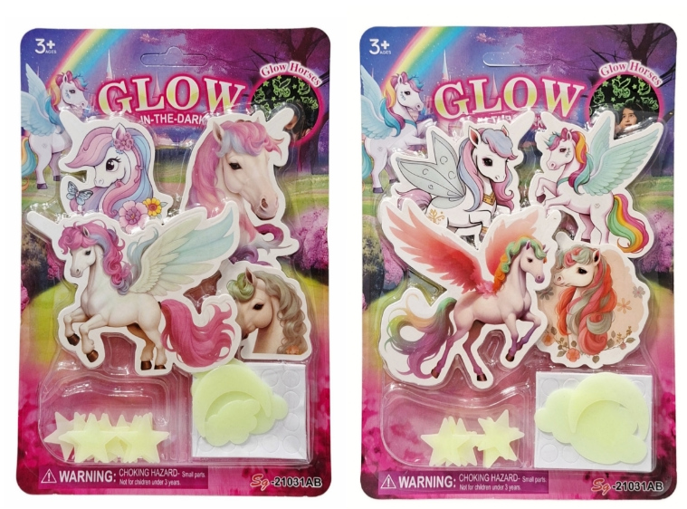 Dekoracje ścienne świecące w ciemności JEDNOROŻEC na blistrze 25x16,5 cm