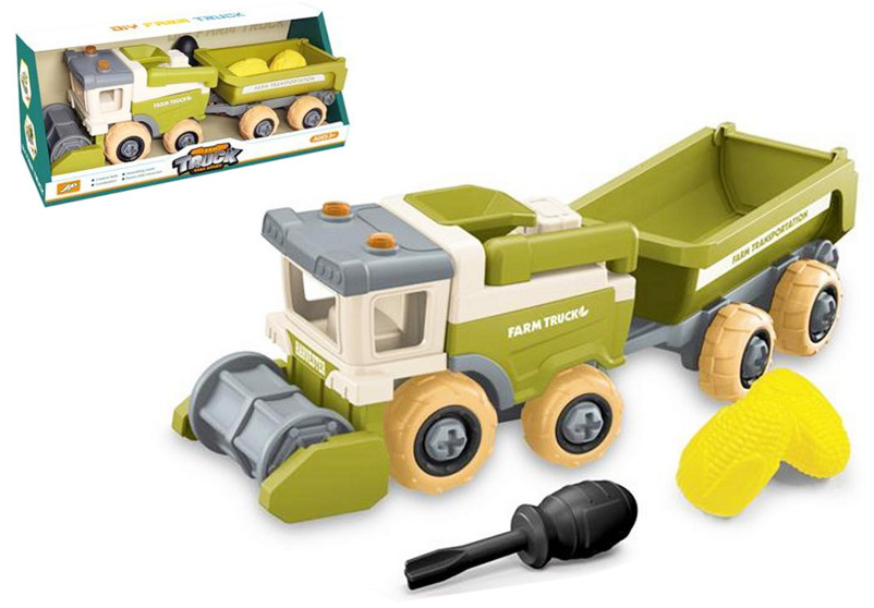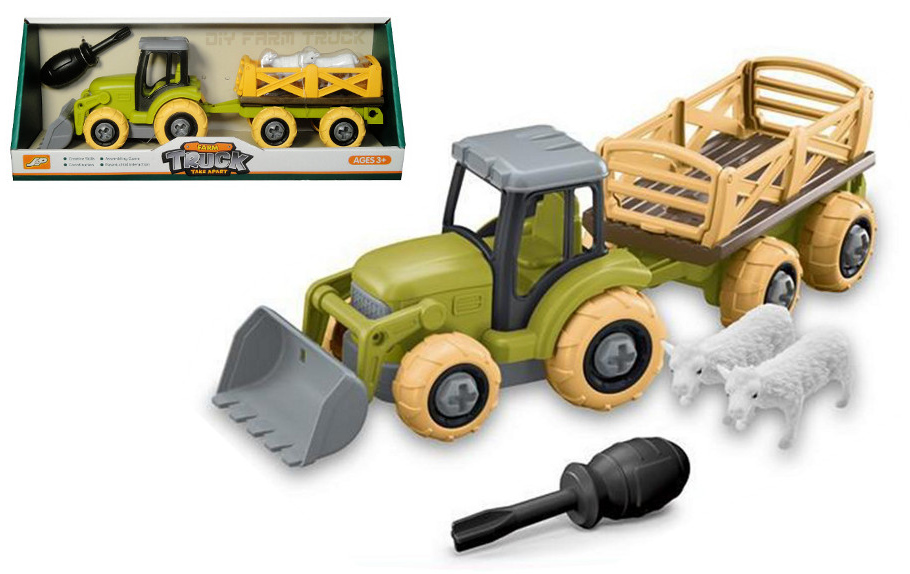Traktor do skręcania z przyczepą i zwierzątami w kartonie 30x12x9 cm