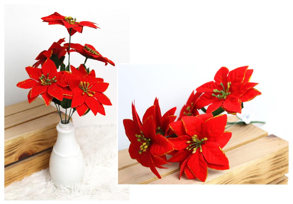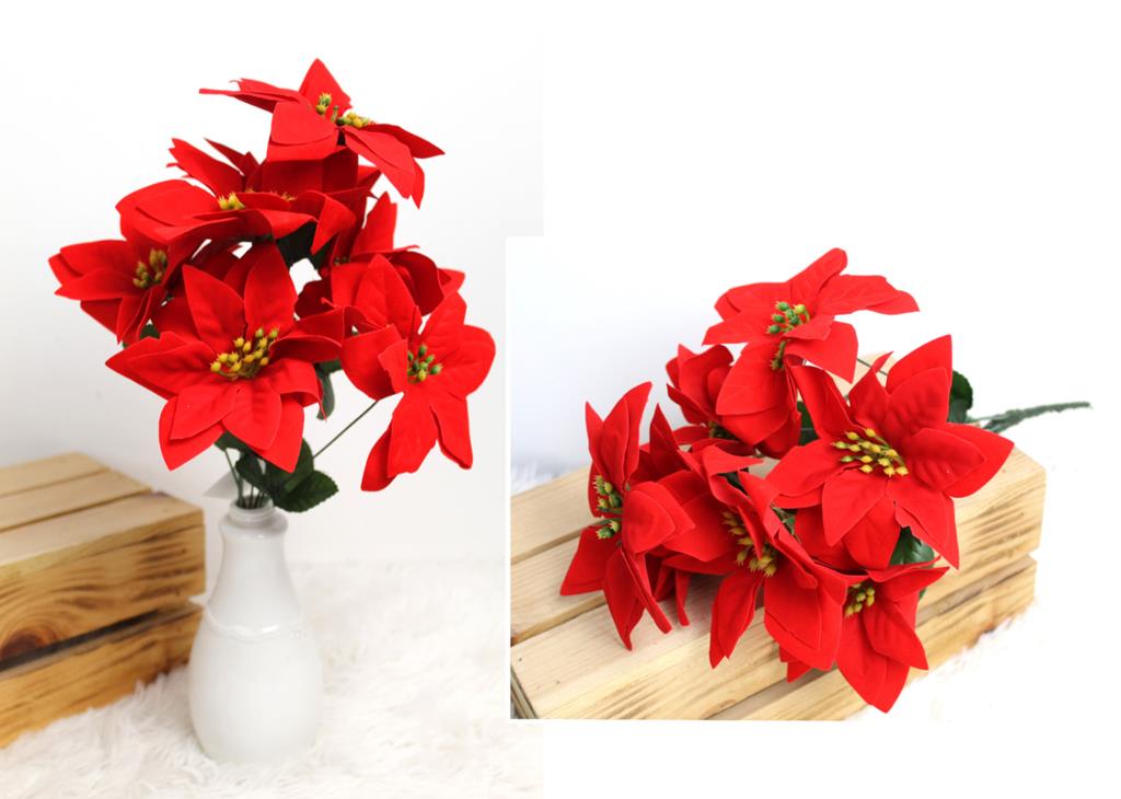Bukiet Gwiazda Betlejemska POINSECJA 7 kwiatów (wys. 35 cm, kwiat 13 cm) CZERWONA welur