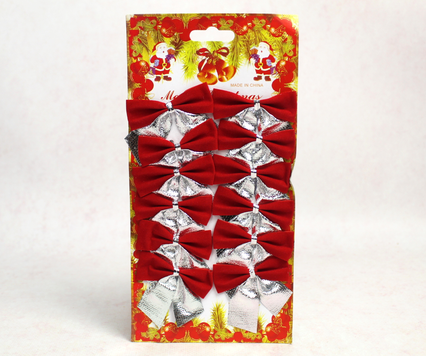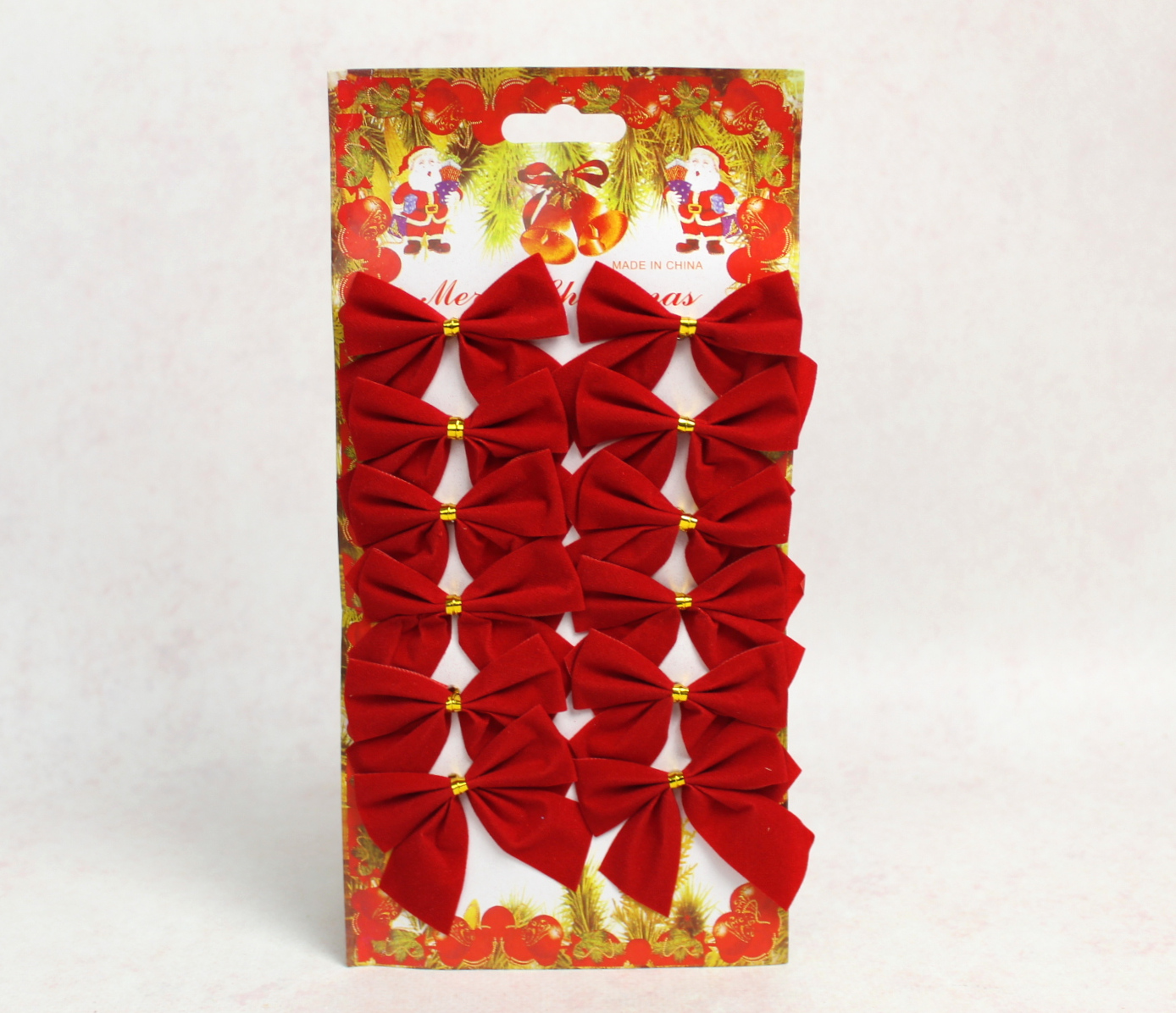 Kokardki świąteczne czerwone zamszowe 5,5 cm - kpl 12 szt