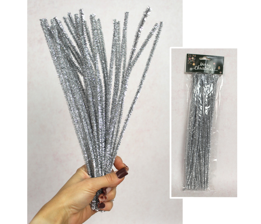 Druciki kreatywne wyciory, wyciorki METALIZOWANE 30 cm kpl 35 szt - SREBRNE