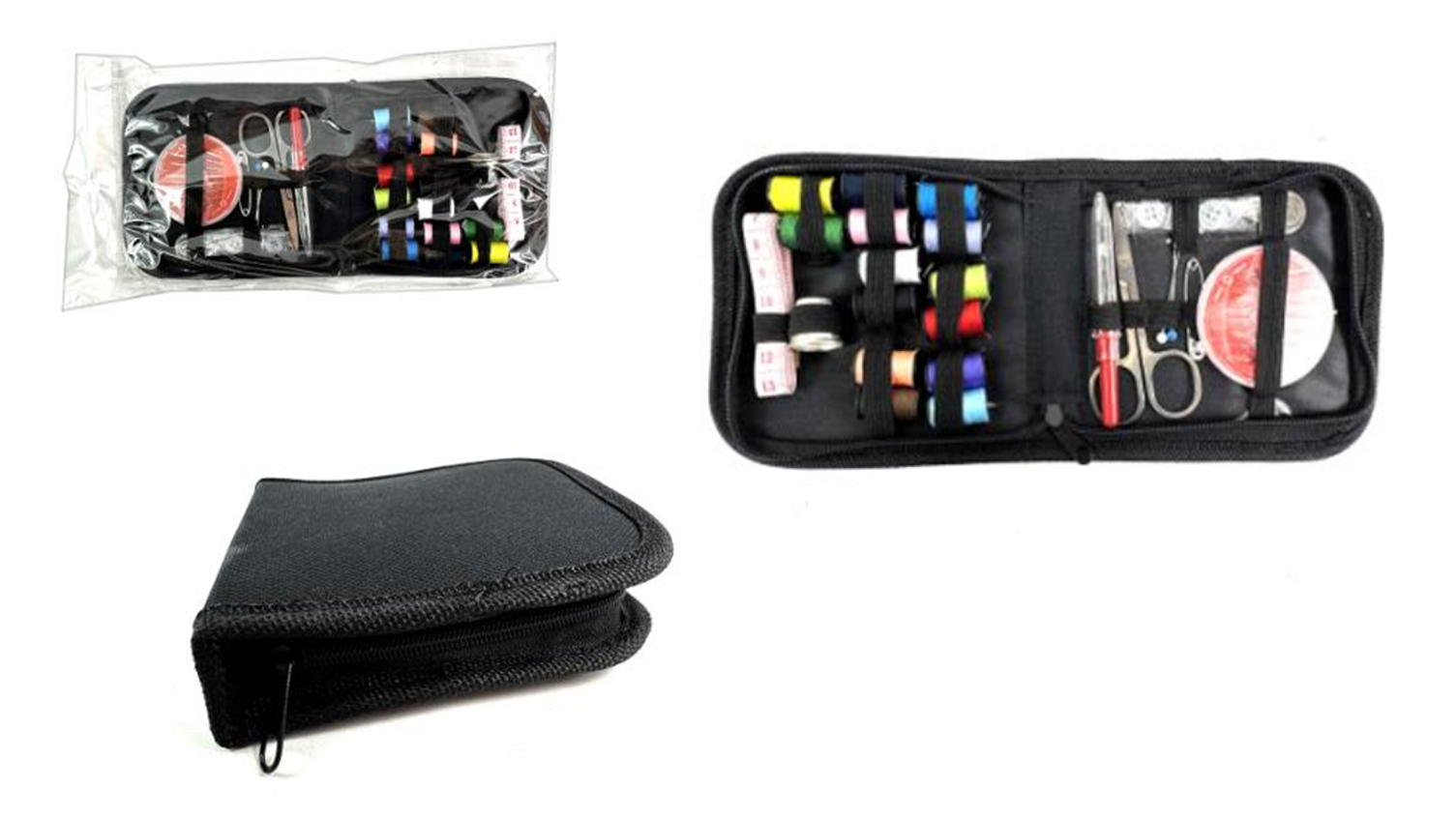 Zestaw krawiecki (nici, igły, guziki, centymetr...) 25el. w etui 26x12 cm