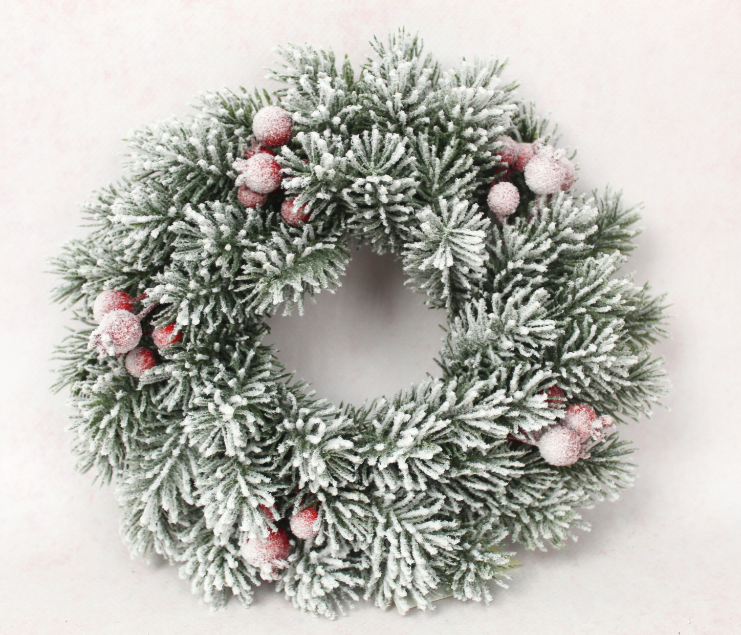 Wianek ŚWIERK ośnieżony Z JARZĘBINĄ 27 cm