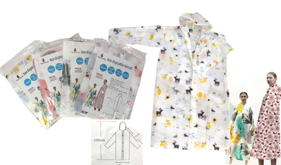 Płaszcz przeciwdeszczowy, deszczówka dł. rękaw z kapturem WZORY 145x68x77 cm