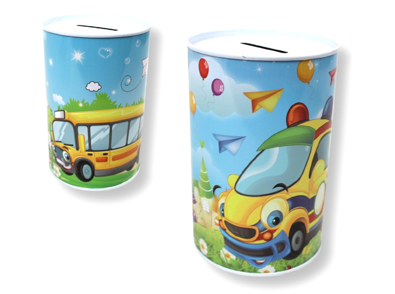 Skarbonka, puszka metalowa AUTA 12,5x8 cm MIX WZORÓW
