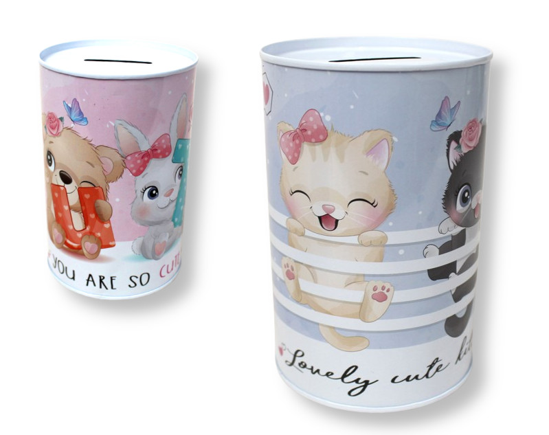 Skarbonka, puszka metalowa ZWIERZĄTKA 15x10 cm MIX WZORÓW