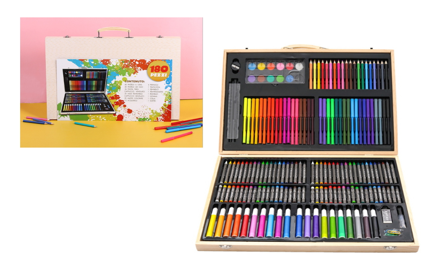 Zestaw artystyczny 180 el. w drewnianej walizce 48x30x4,5 cm