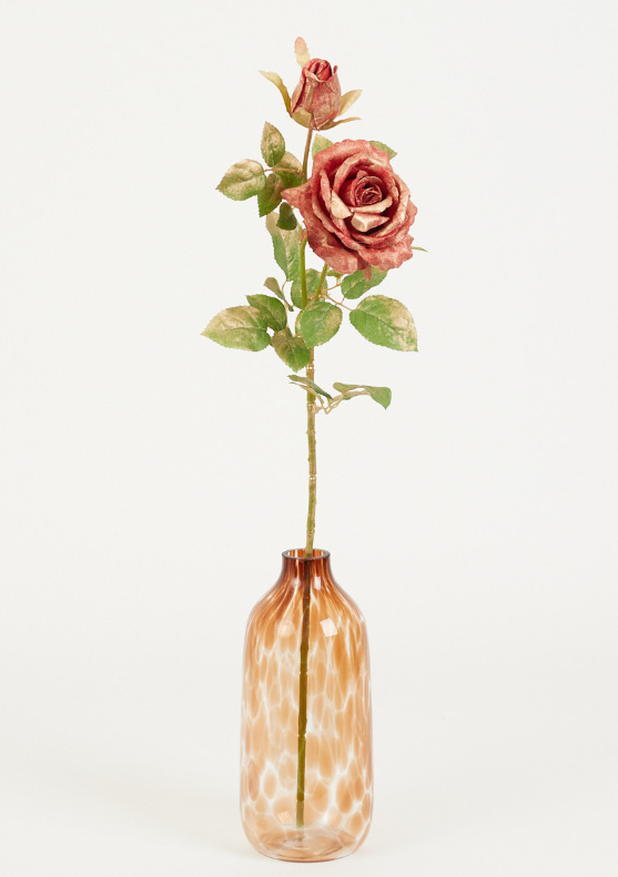 Kwiat RÓŻA wys. 68 cm (kwiat 10x6 cm + pąk) CZERWONA POZŁACANA
