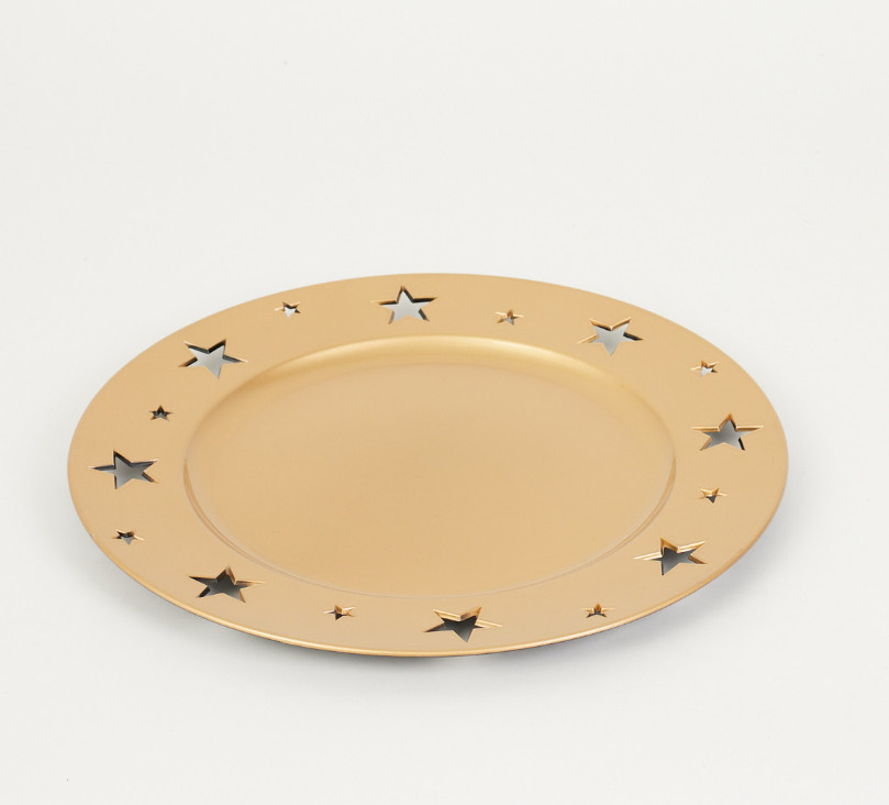 Talerz, podtalerz patera dekoracyjna plastikowa połysk CHOINKI, GWIAZDY złoty 33 cm