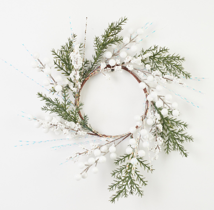 Wianek JAŁOWIEC z białymi kulkami 34 cm