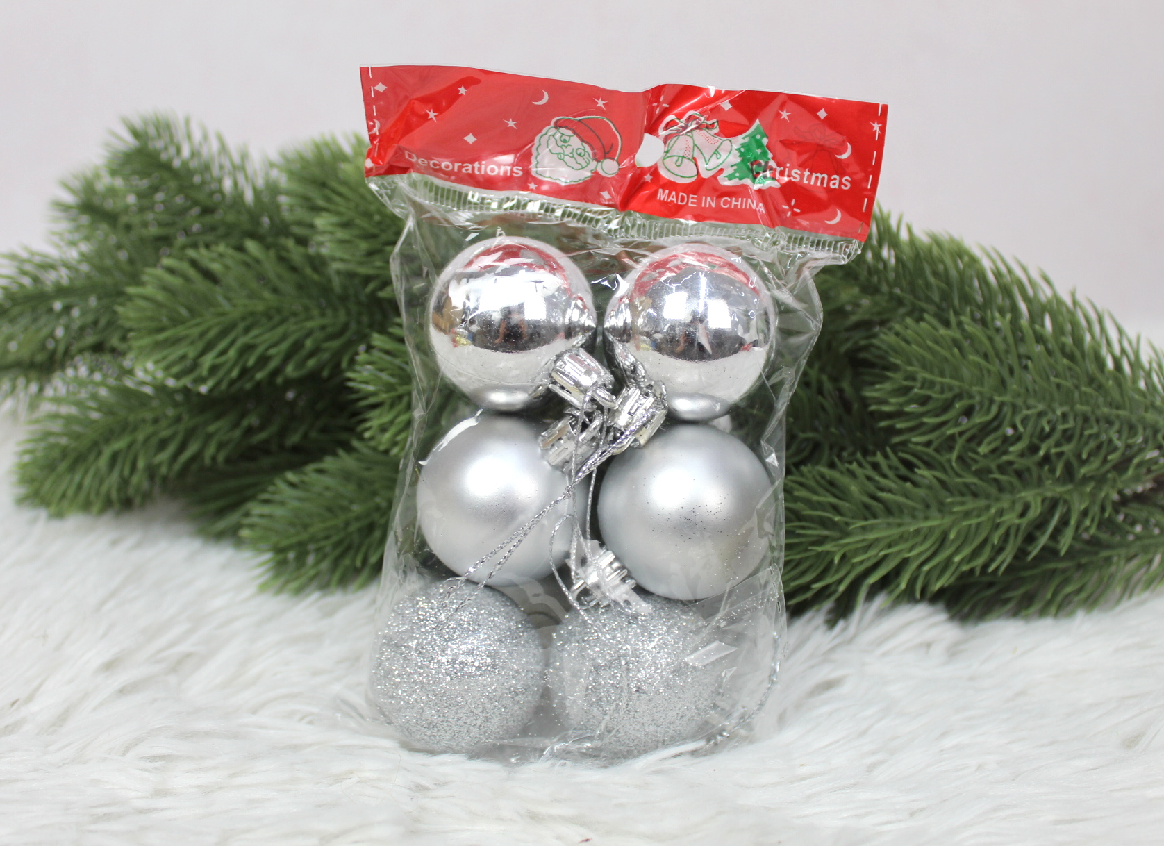 Bombki plastikowe 6 cm SREBRNE kpl. 6 szt