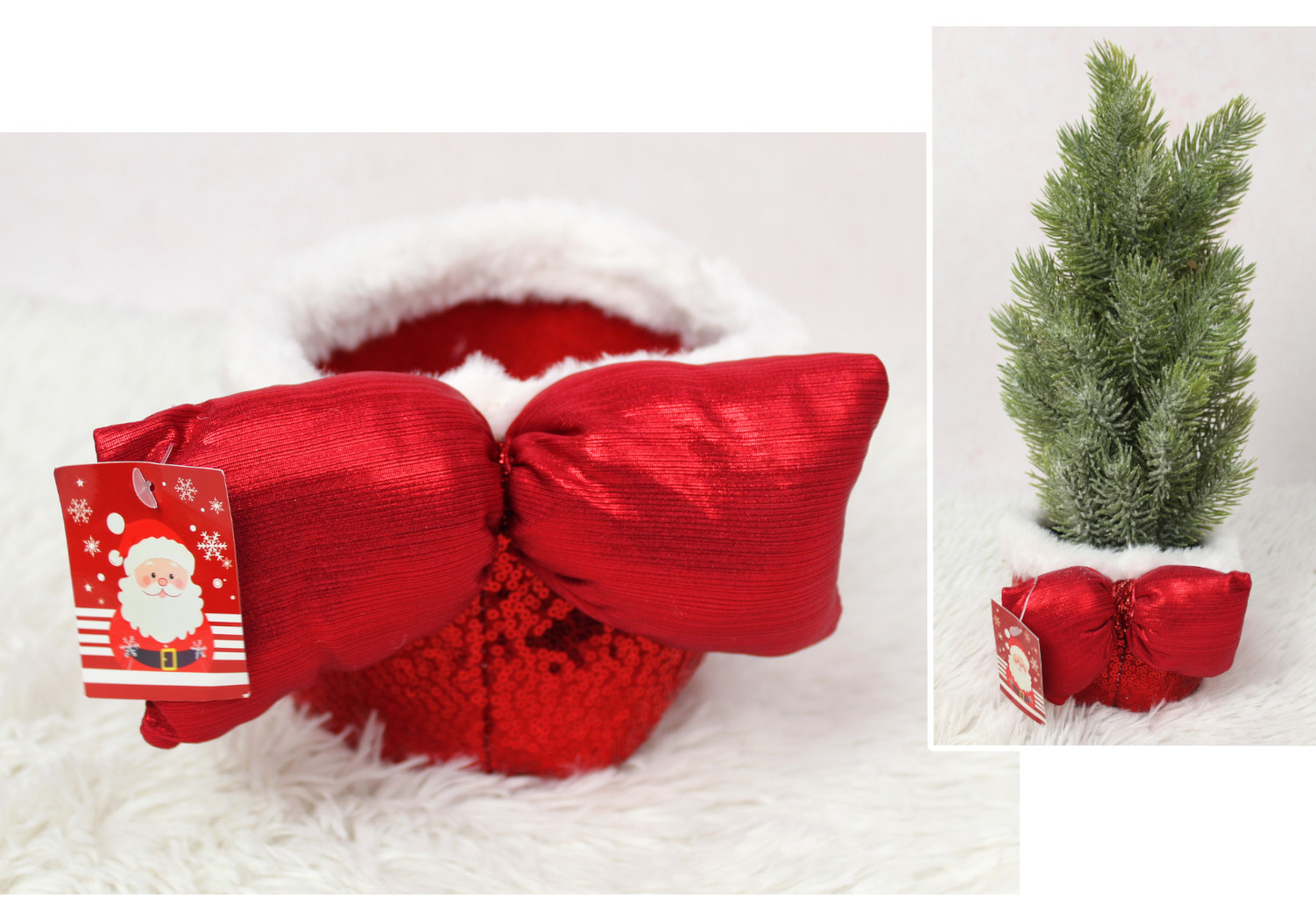 Pojemnik ozdobny, osłonka materiałowa CEKINY FUTERKO 15x12 cm CZERWONY