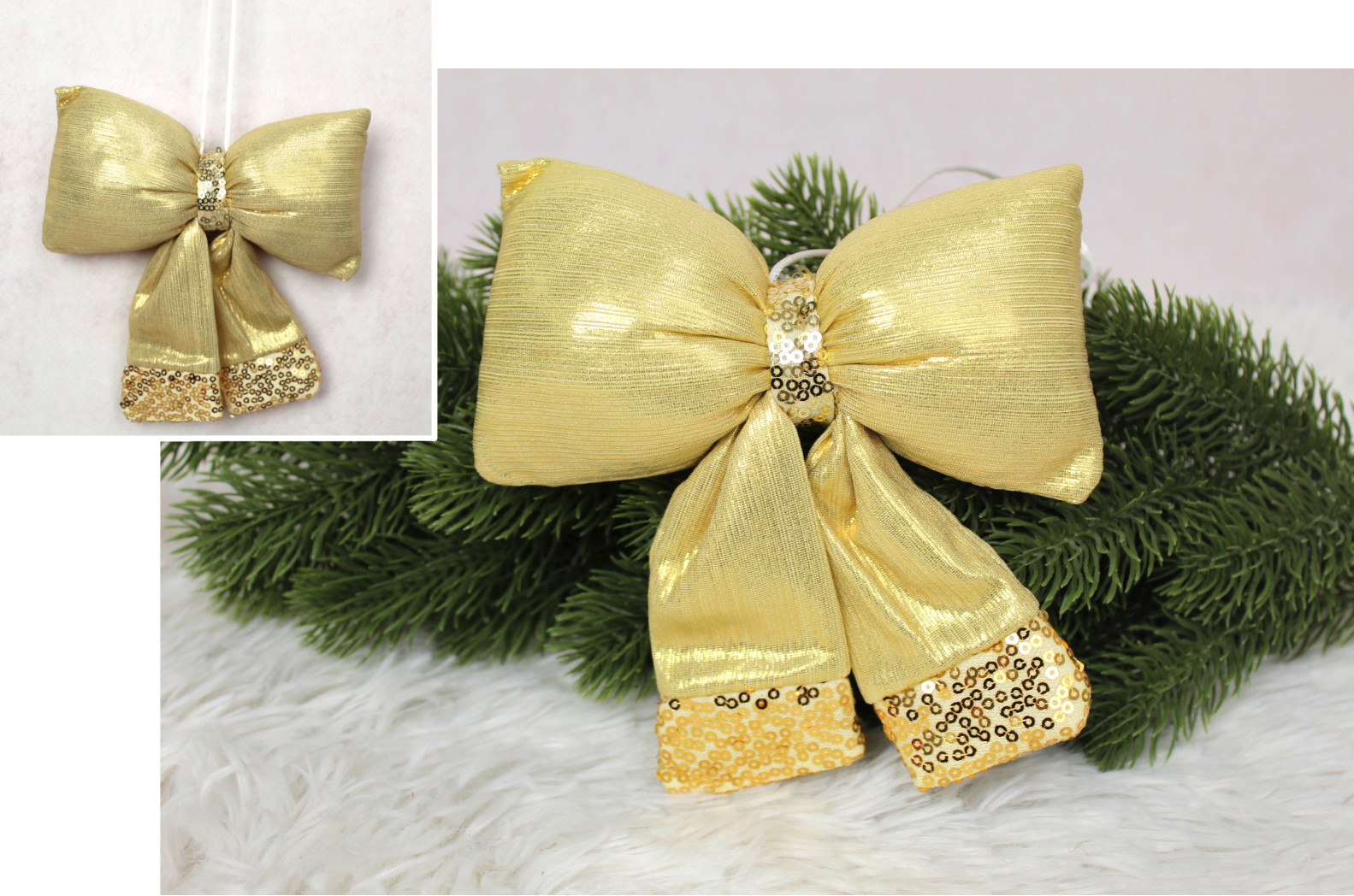 Zawieszka na choinkę pluszowa z cekinami KOKARDA 20x20 cm ZŁOTA