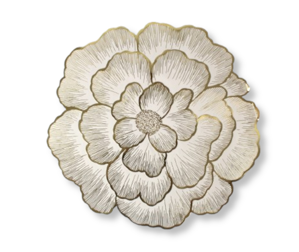 Mata stołowa- tw. sztuczne okrągła KWIAT 38 cm BIAŁA ZŁOTY RANT