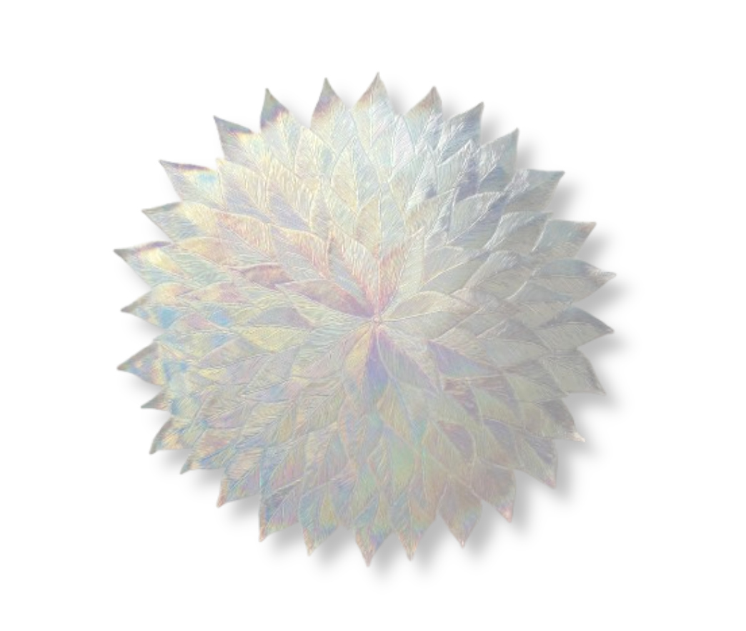 Mata stołowa- tw. sztuczne okrągła LIŚCIE 38 cm SREBRNA HOLOGRAFICZNA