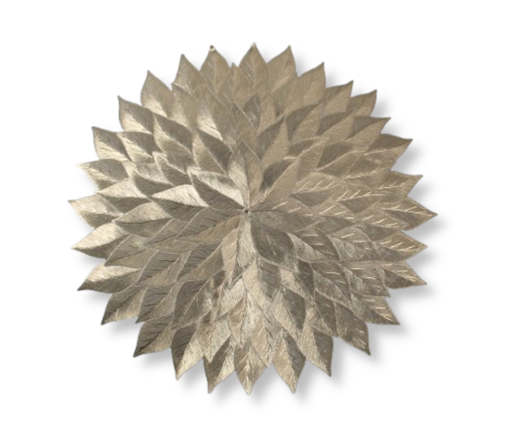 Mata stołowa- tw. sztuczne okrągła LIŚCIE 38 cm SREBRNA
