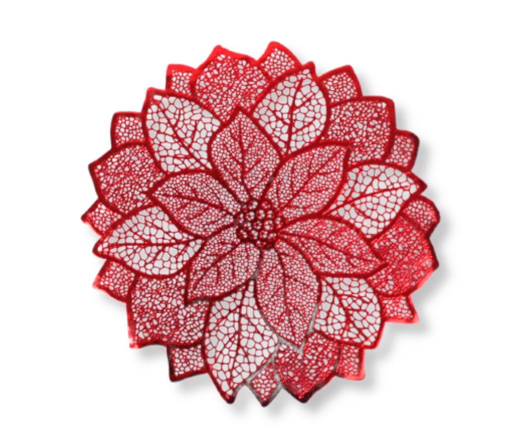 Mata stołowa- tw. sztuczne okrągła POINSECJA 38 cm CZERWONA ażurowa