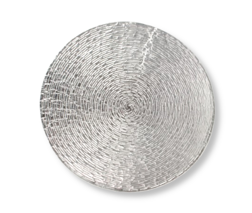 Mata stołowa- tw. sztuczne okrągła WIR, FALA 38 cm SREBRNA ażurowa