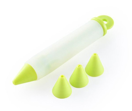 Dekorator do ciasta, pisak + 4 końcówki plastik-slilikon ZIELONY 14,5 cm