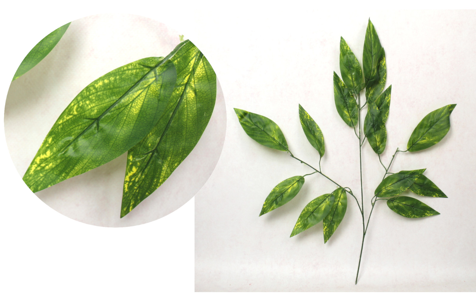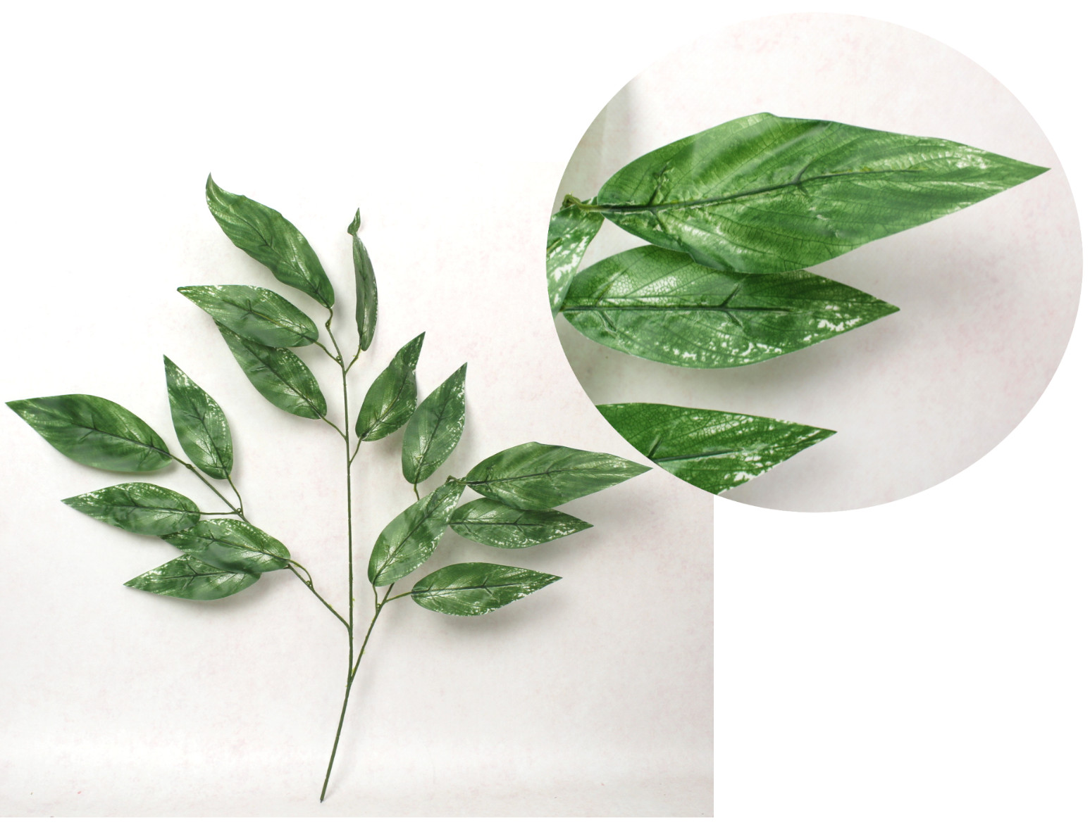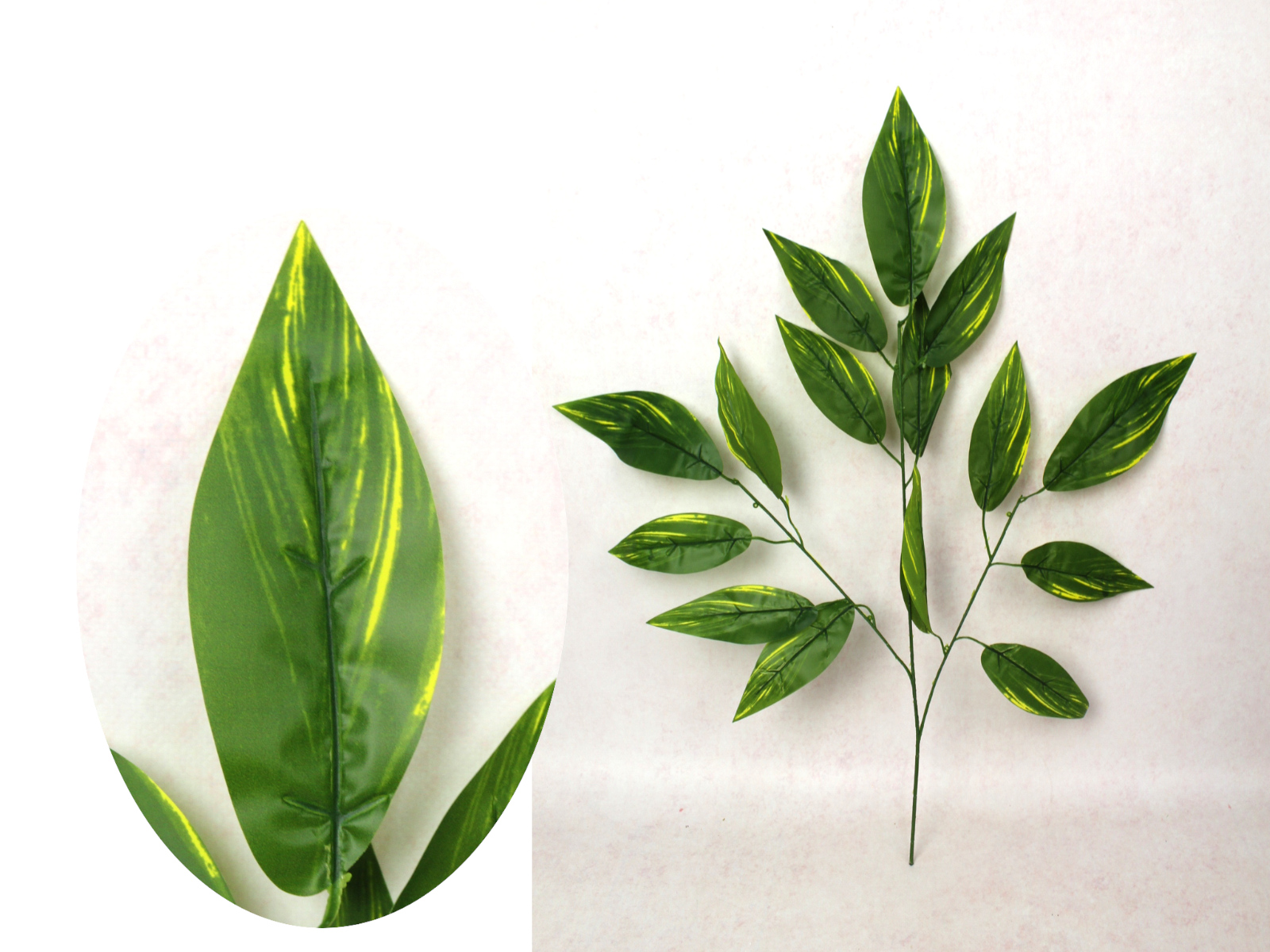 Liść silikonowy 1-ramienny SERCE wys. 46 cm zielony jasne i ciemne listki z plamkami - 1 szt