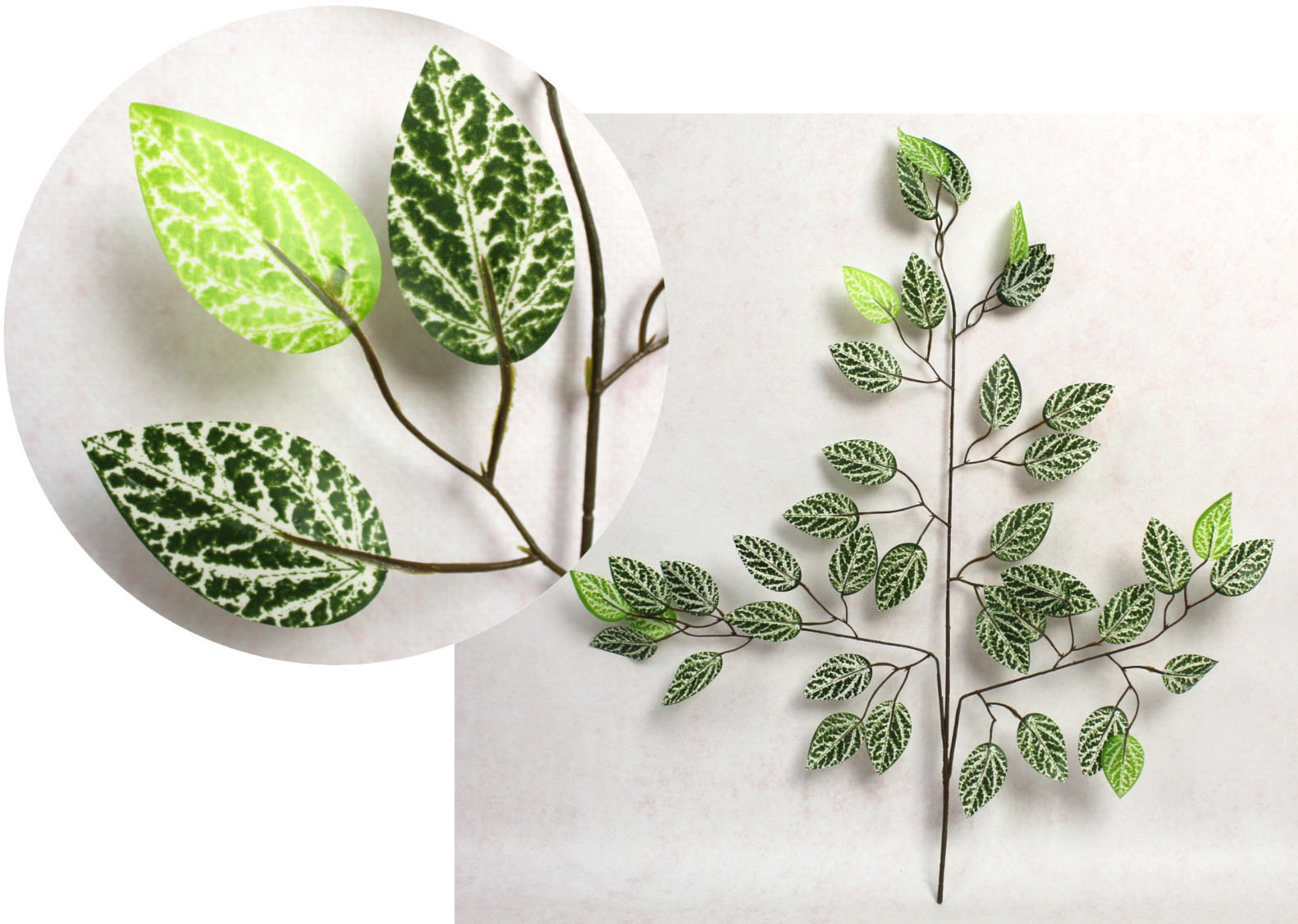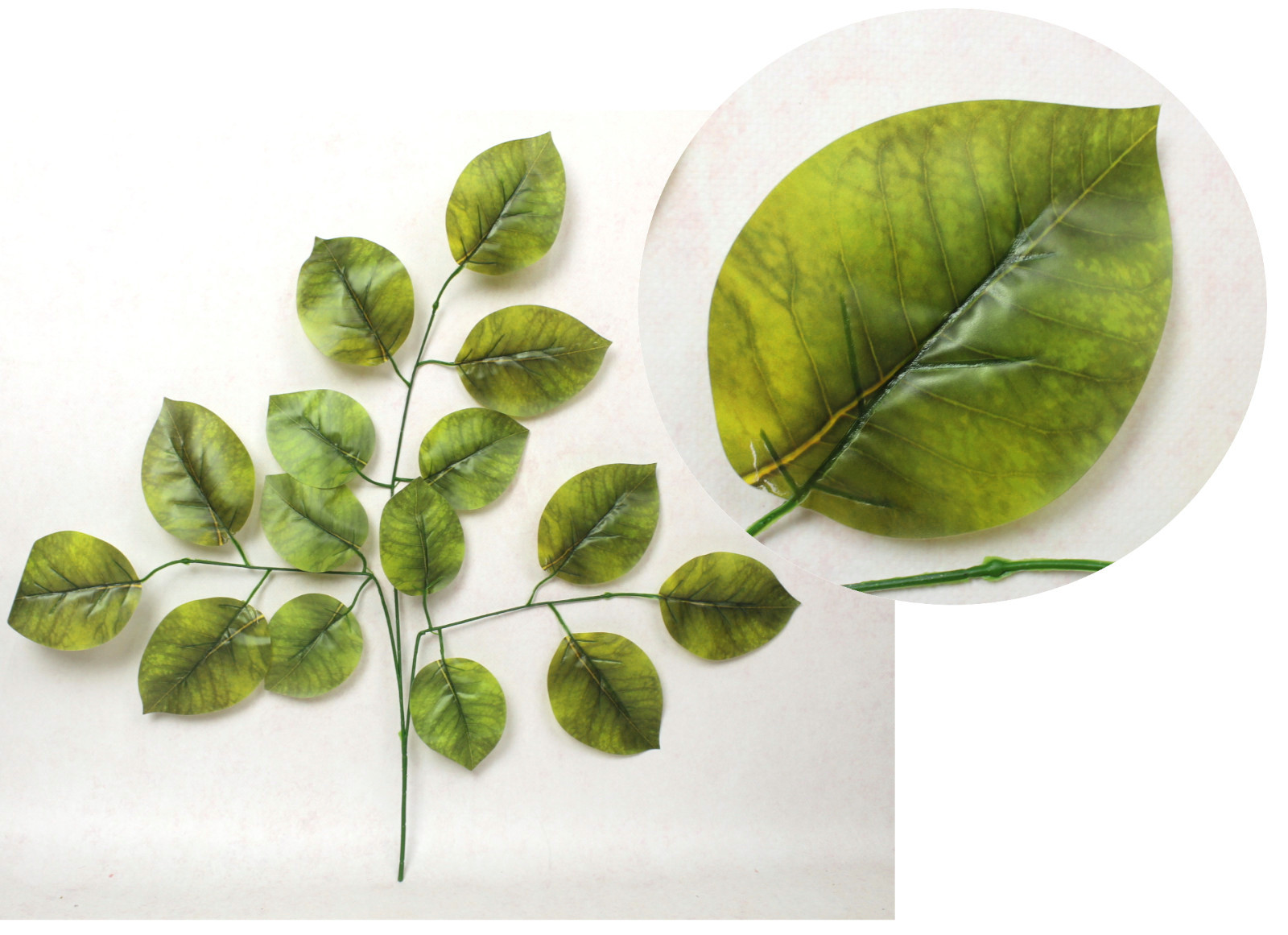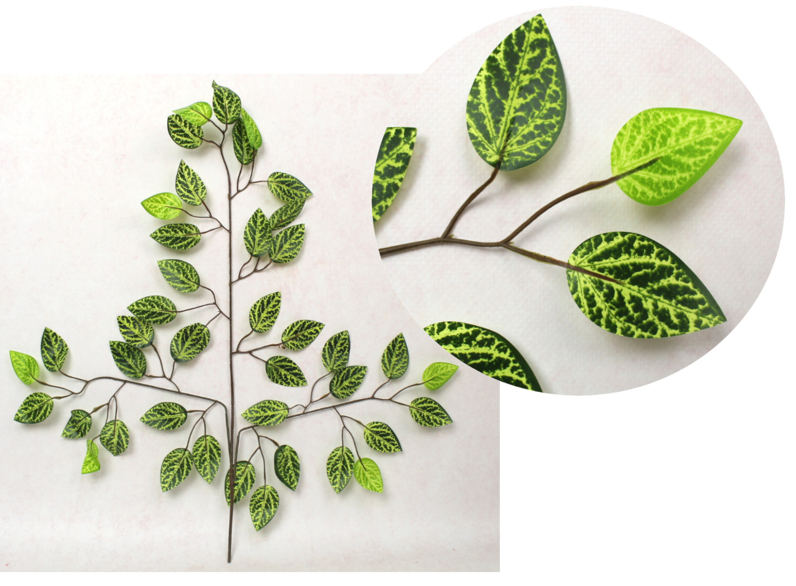 Liść silikonowy 1-ramienny SERCE wys. 46 cm zielony jasne i ciemne listki z plamkami - 1 szt