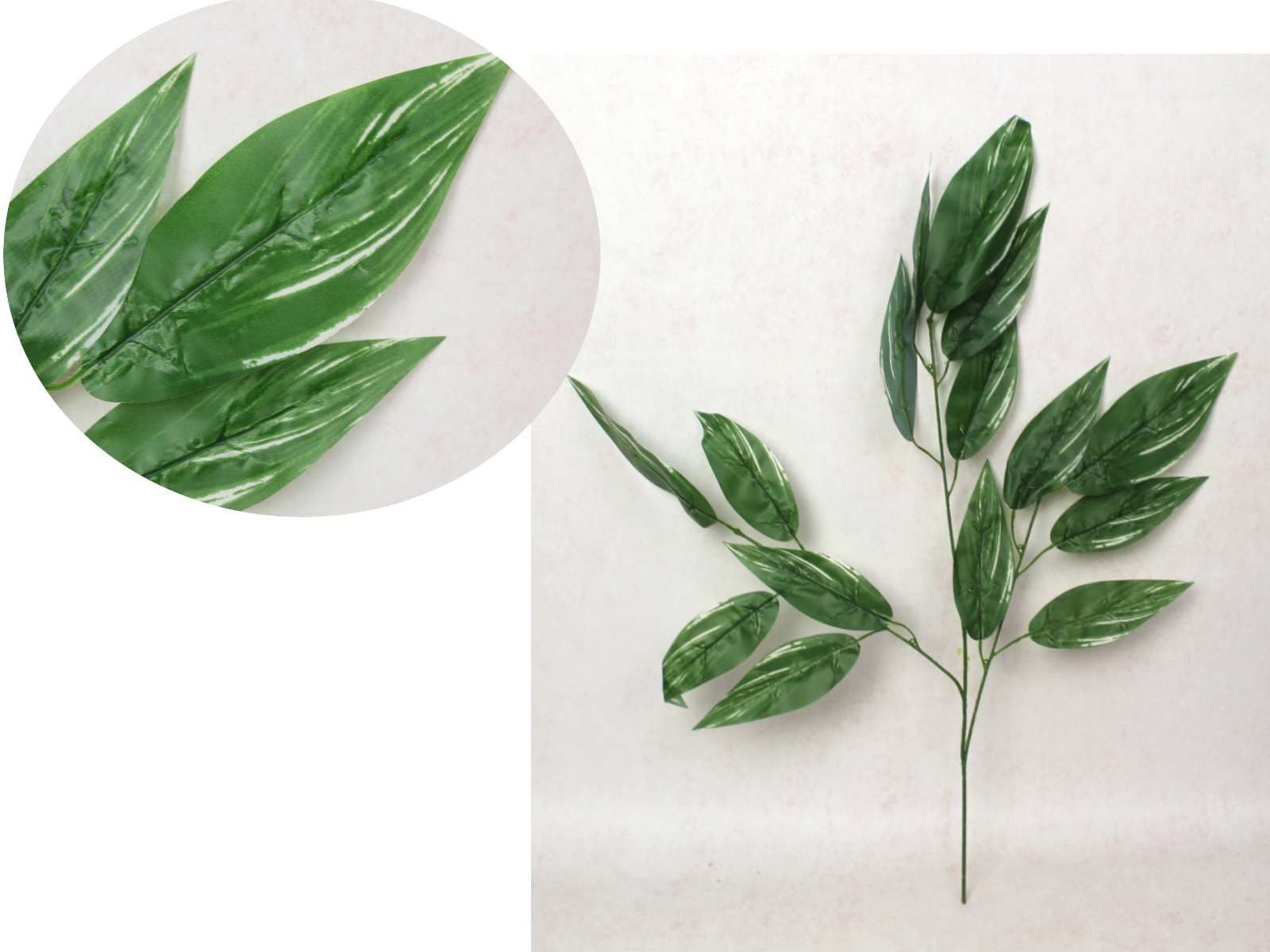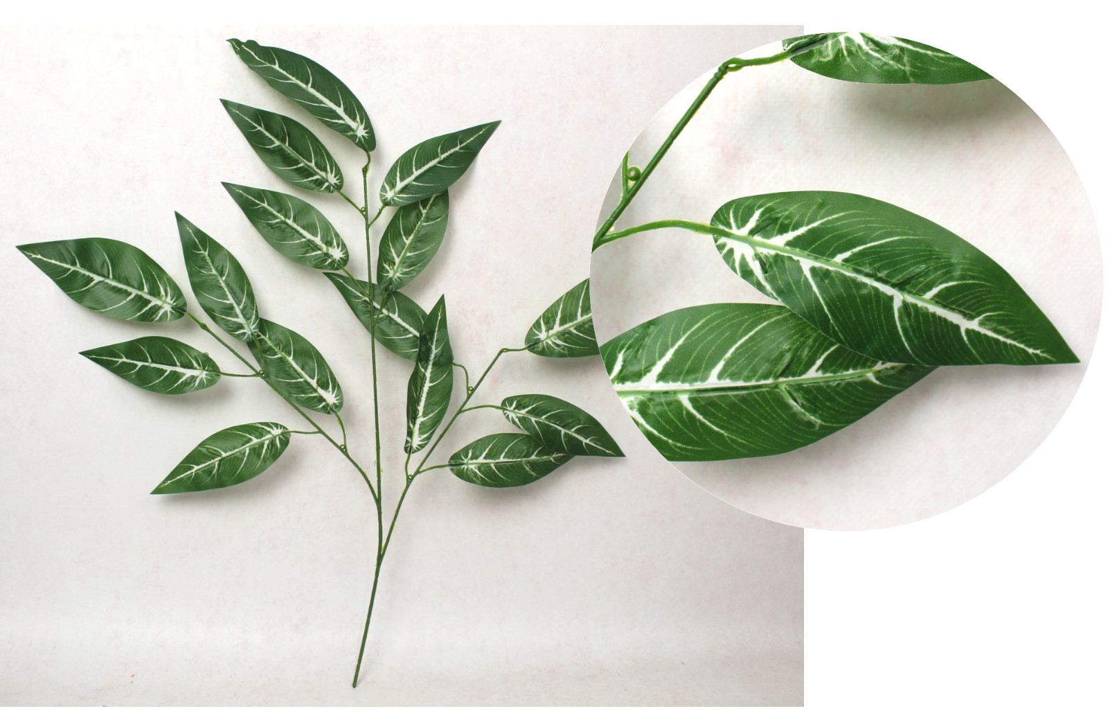 Liść silikonowy 3-ramienny MANGO 70 cm zielony z białymi żebrami - 1 szt