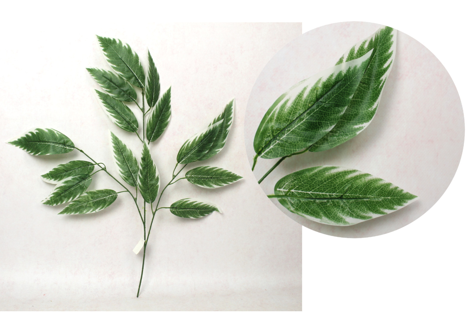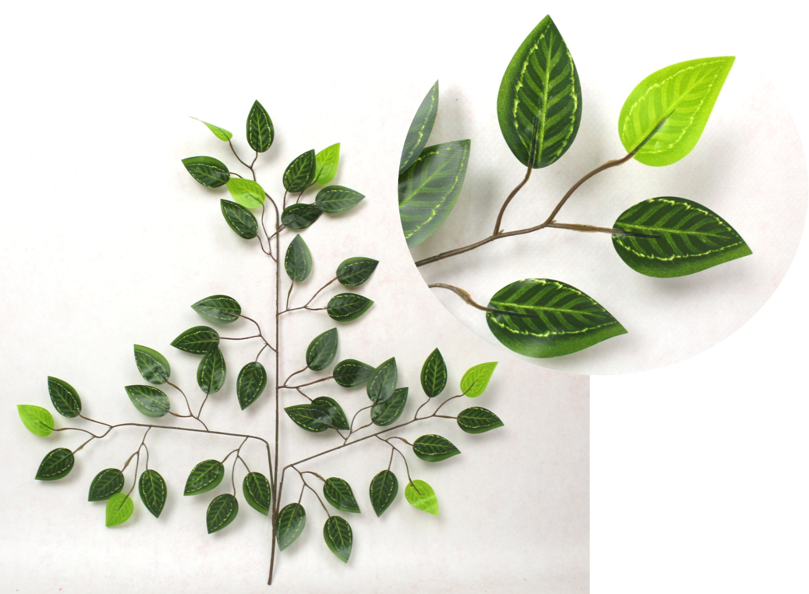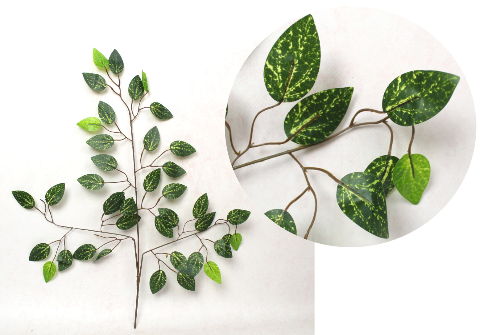 Liść silikonowy 3-ramienny FIKUS, BENJAMIN 60 cm zielony nakrapiany - 1 szt