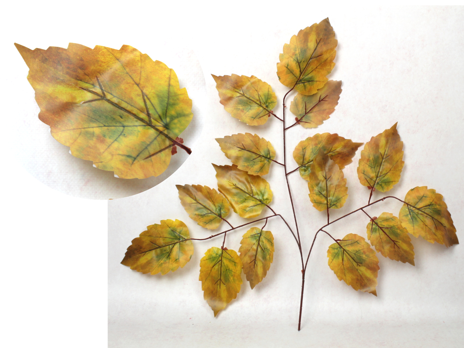 Liść silikonowy 1-ramienny WINOBLUSZCZ nakrapiany wys. 53 cm pomarańczowo-żółto-zielony - 1 szt