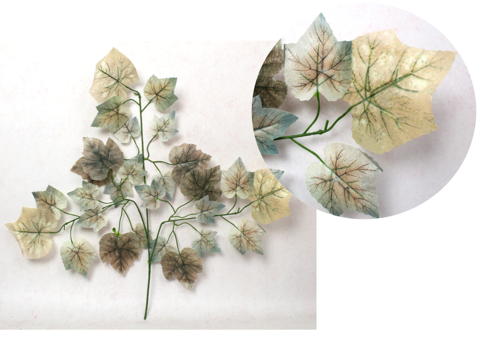 Liść silikonowy 1-ramienny WINOBLUSZCZ nakrapiany wys. 53 cm zielono-brązowy - 1 szt