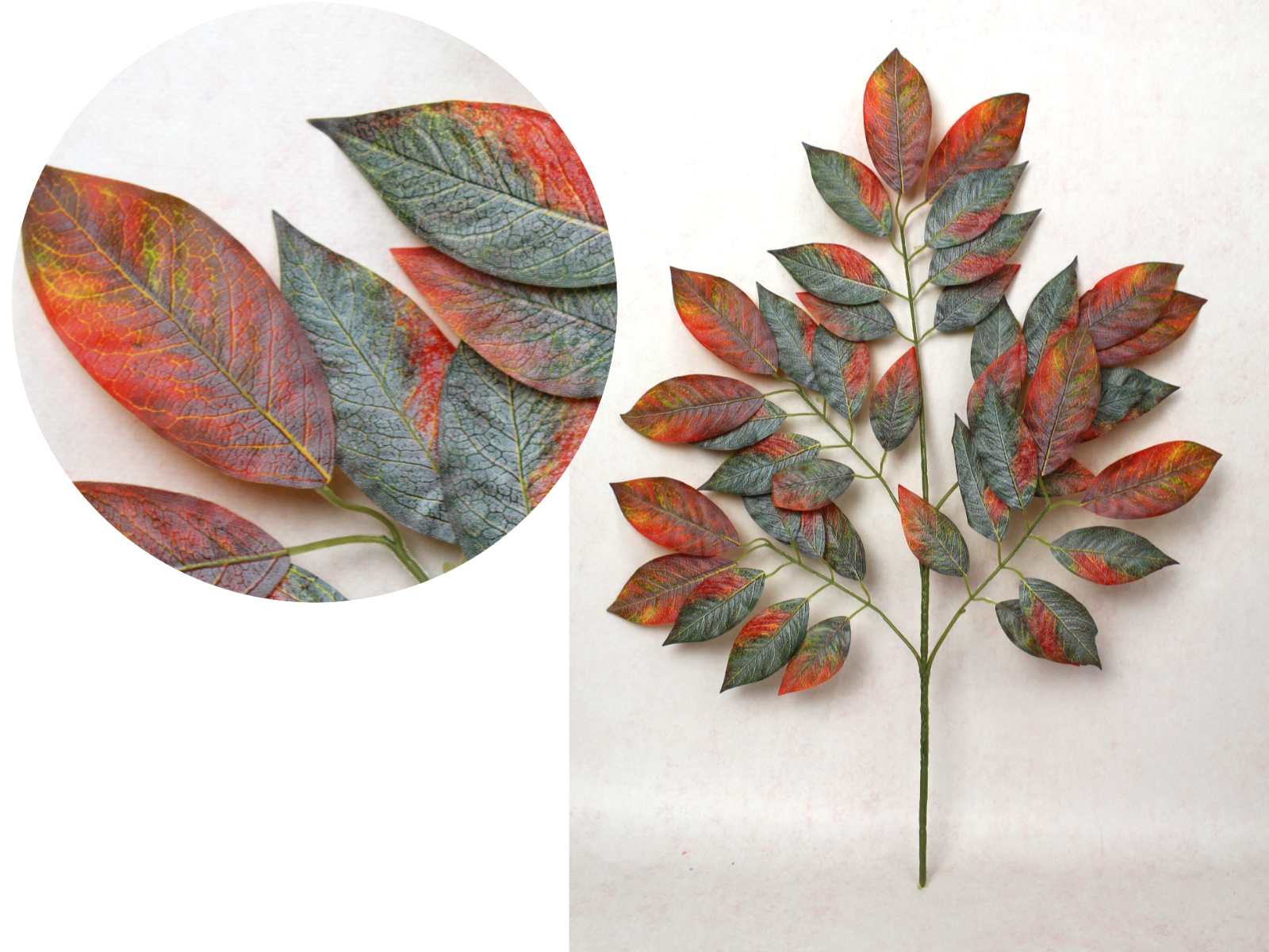 Liść silikonowy 3-ramienny OLCHA 70 cm pomarańczowy cieniowany - 1 szt